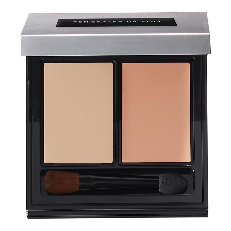 - 1.化粧下地や日焼け止めで素肌を整えた後、付属のコンシーラーブラシで、目の下のクマ部分にオレンジ、Tゾーン・頬中央・ほうれい線・あごにライトベージュをのせます。