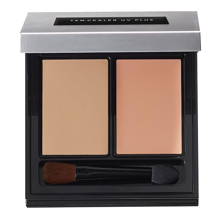 - 1.化粧下地や日焼け止めで素肌を整えた後、付属のコンシーラーブラシで、目の下のクマ部分にオレンジ、Tゾーン・頬中央・ほうれい線・あごにライトベージュをのせます。