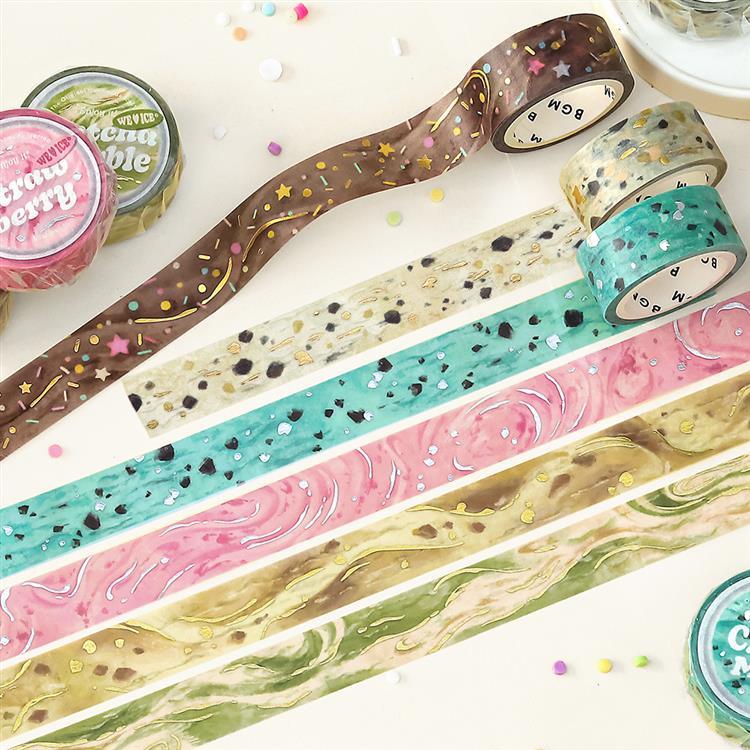 アイスクリームをモチーフにした箔押しマスキングテープ 「We Love ICE」。