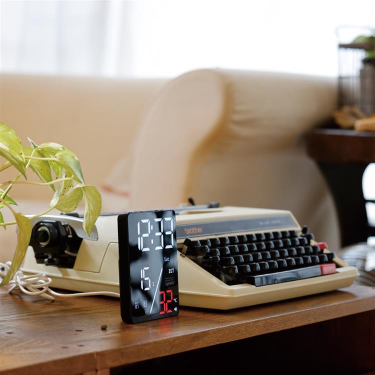 LED照度調整が可能なコンパクトな卓上時計で、リビングやベッドサイドなど、さまざまな生活空間にフィットします。