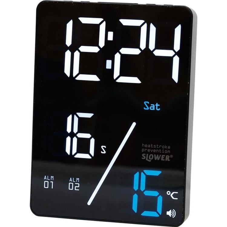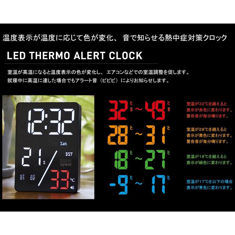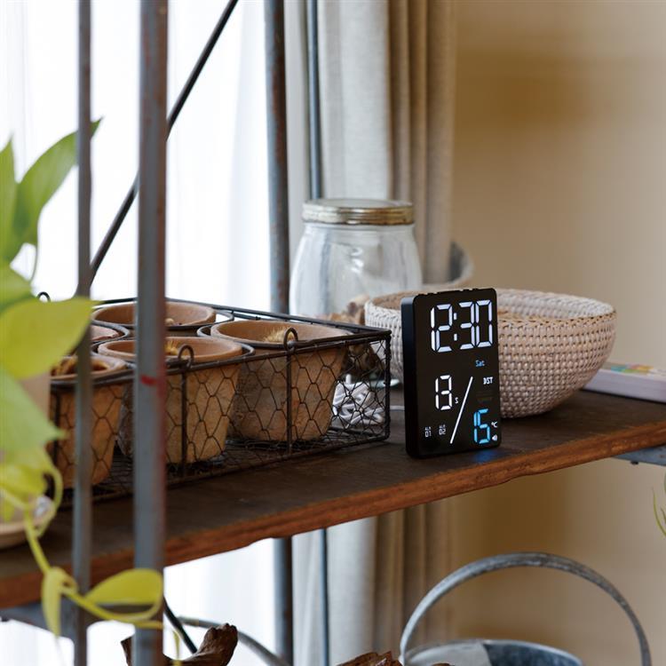 明るい場所でも暗い場所でも一目で時刻が確認できる、視認性抜群のLEDサーモアラートクロック。