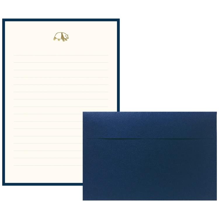 パンダのイラストがかわいいくっきりブルーのレターセット