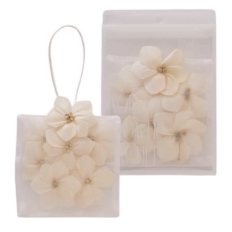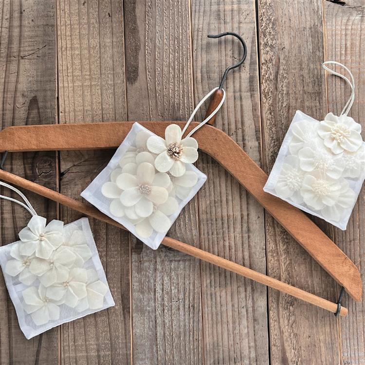 繊細な小さなソラフラワーをオーガンジーに包み込んだ、エレガントな香り付きサシェです。