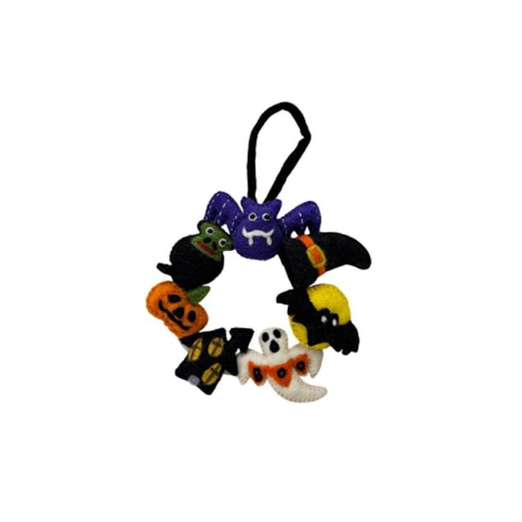 ハロウィンモチーフのフェルトオーナメントがついたリース型のオブジェです。