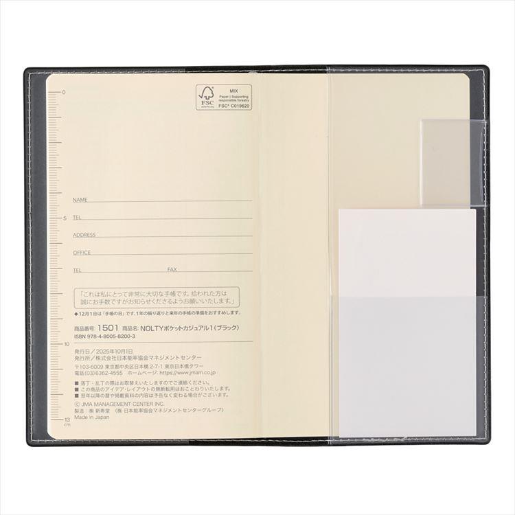 2026年1月始まり手帳 週間レフト B7 NOLTY ポケットカジュアル1 ブラック