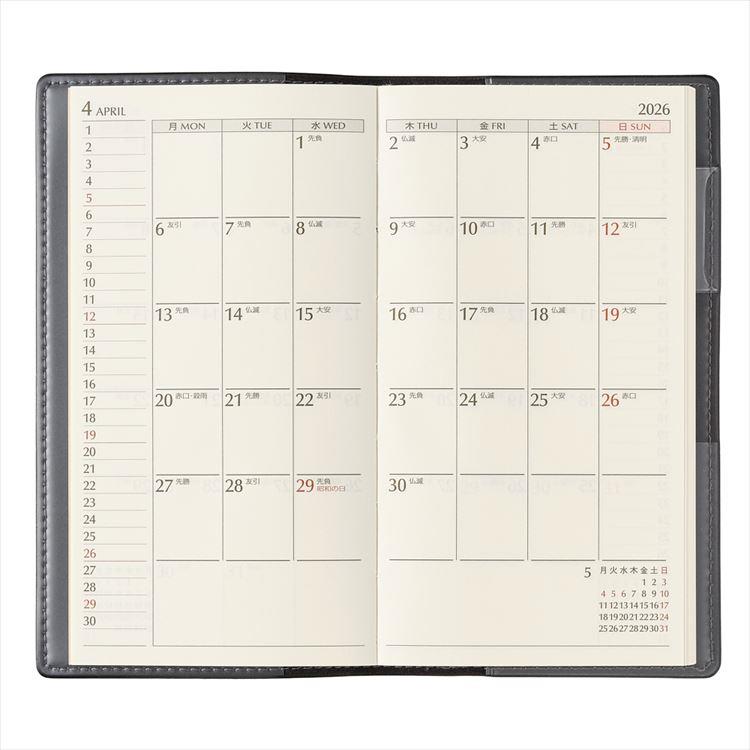 2026年1月始まり手帳 週間レフト B7 NOLTY エクセルカジュアル1 ブラック
