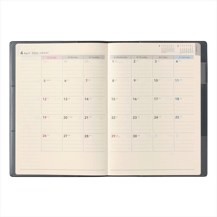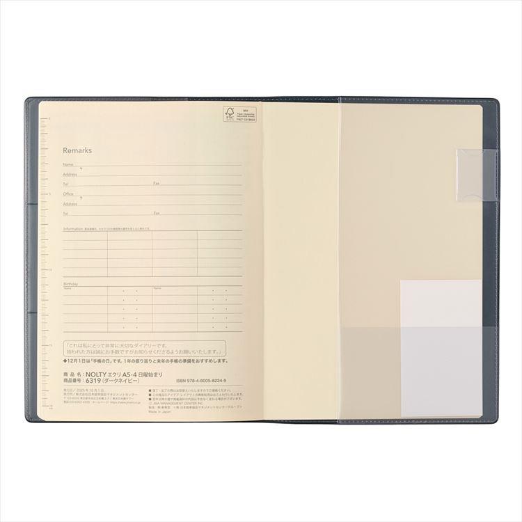 - 2026年1月始まり手帳 週間レフト A5 NOLTY エクリ4 ダークネイビー