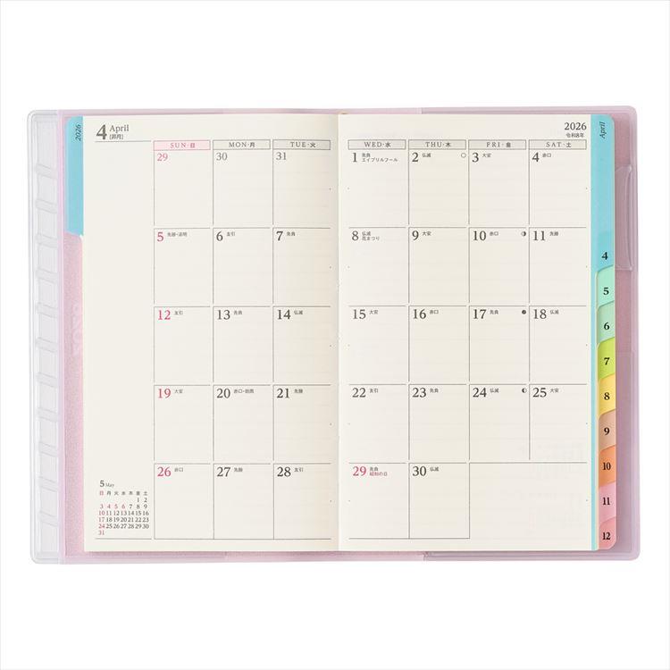 - 2026年1月始まり手帳 月間 B7 ペイジェム コンパクト-i メモ ライラック