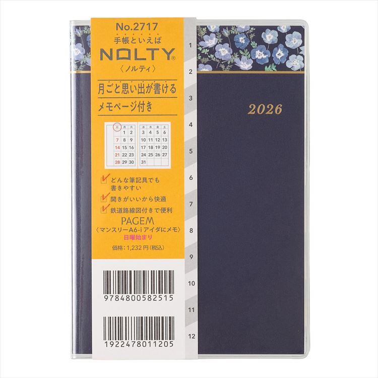 - 2026年1月始まり手帳 月間 A6 ペイジェム アイダにメモ ネイビー
