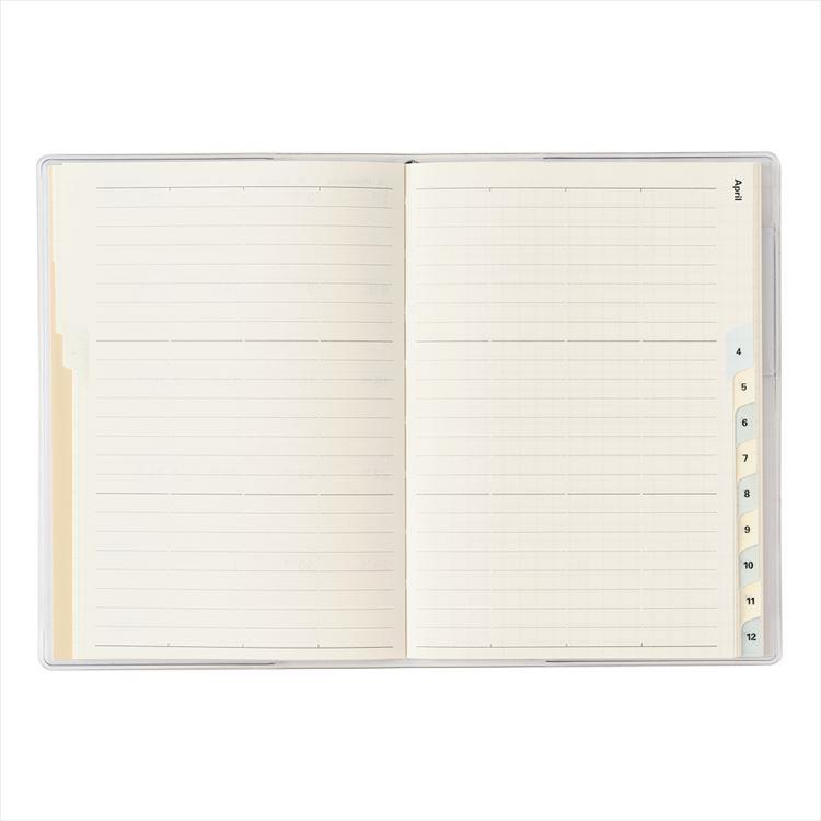 PAGEM by NOLTY(ペイジェム バイノルティ)のマンスリー手帳、A6-iアイダにメモシリーズは、各月のアイダにメモページと方眼ページが2ページずつ付いているのが特長です。