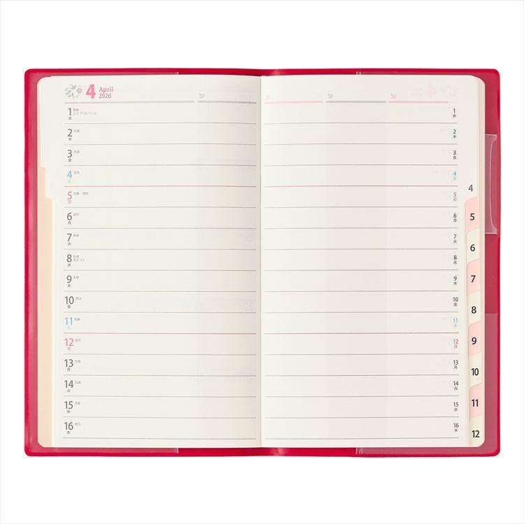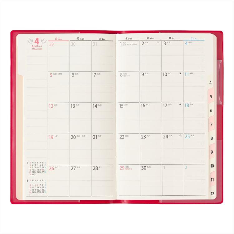 - 2026年1月始まり手帳 月間 A6F ペイジェム ファミリー たっぷりスリム-i ベリーレッド