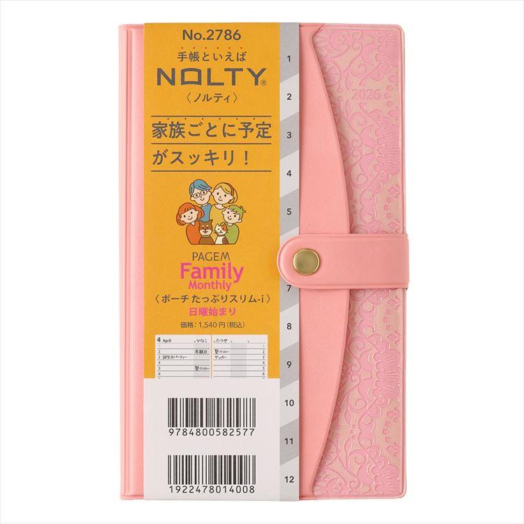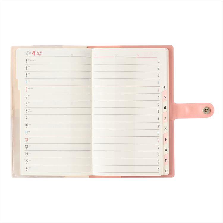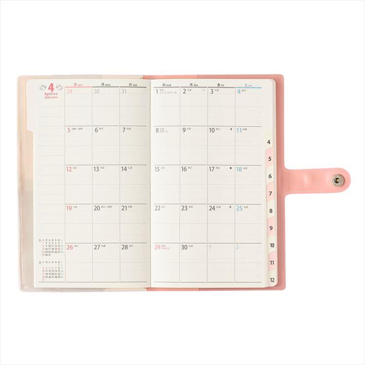 - 2026年1月始まり手帳 月間 A6F ペイジェム ファミリー ポーチ たっぷりスリム-i シルキーピンク