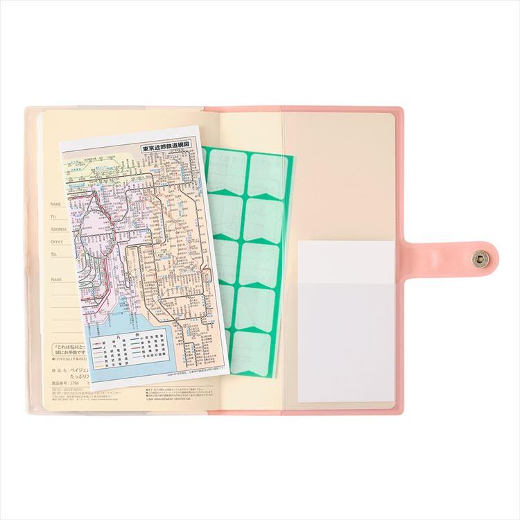 カバンのなかで散らばりがちな小物を入れておくのに便利な外ポケット付き表紙カバーの手帳