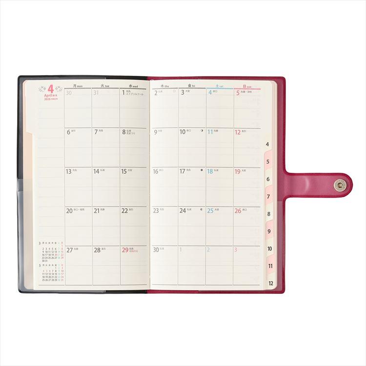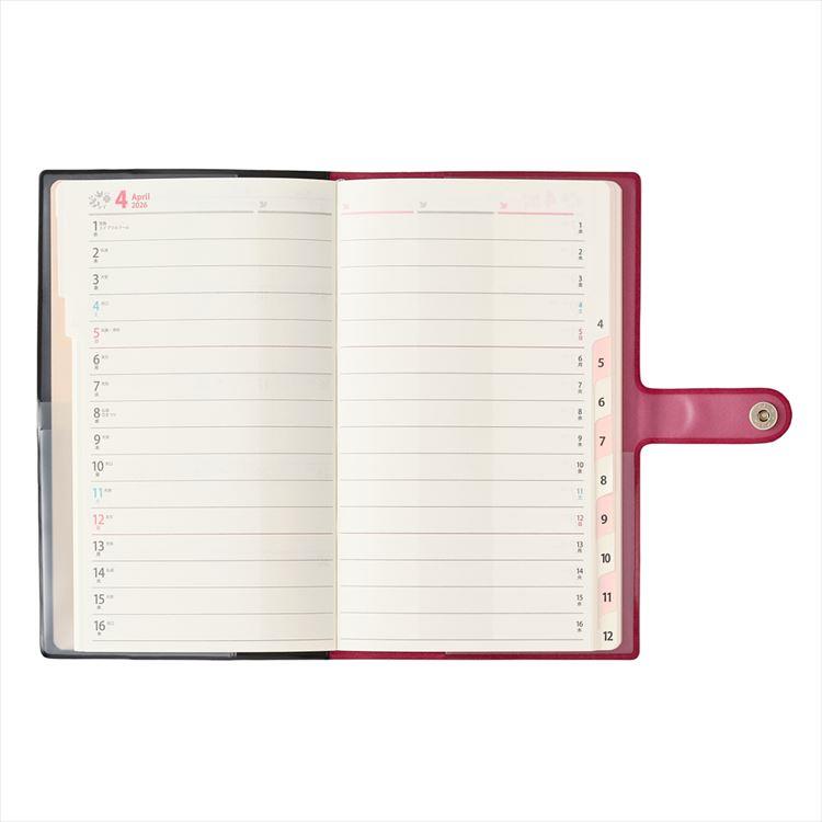 - 2026年1月始まり手帳 月間 A6F ペイジェム ファミリー ポーチ たっぷりスリム-i ボルドーワイン