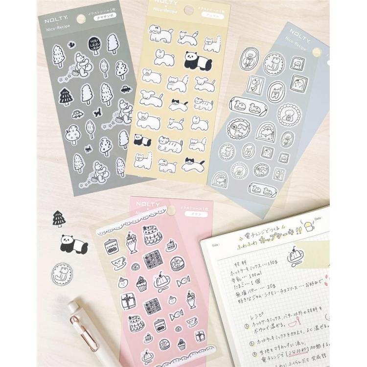 ゆるめでかわいく親しみやすい作品のはんこ作家「Nico-Recipe(ニコレシピ)」さんとNOLTYのコラボイラストシール。