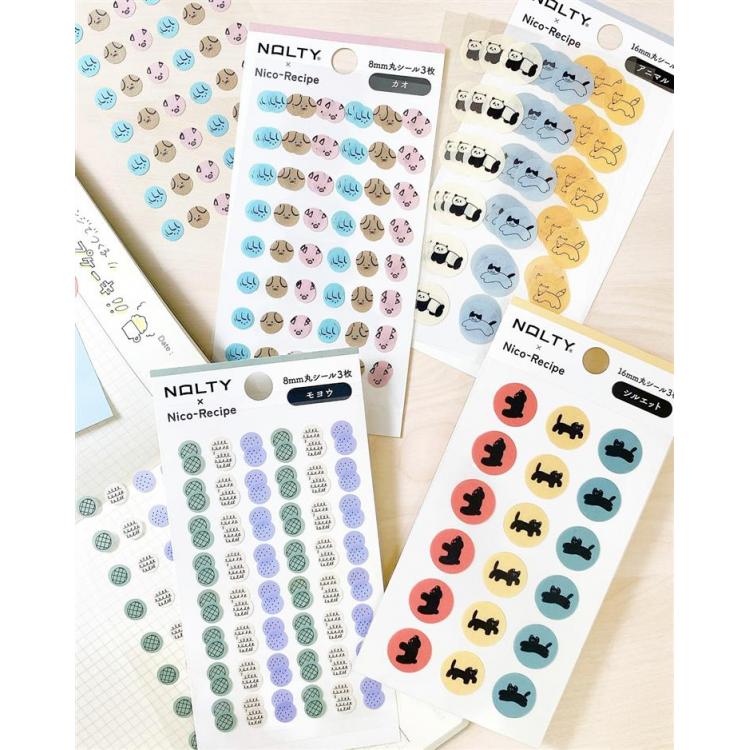 ゆるめでかわいく親しみやすい作品を制作される・はんこ作家「Nico-Recipe(ニコレシピ)」さんとNOLTYのコラボ丸シール。