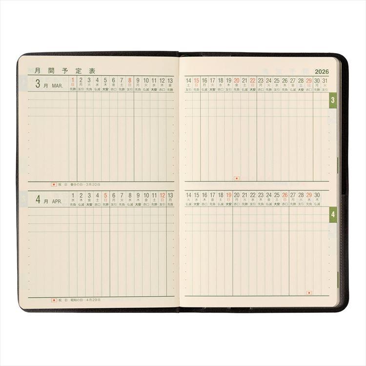 - 2026年1月始まり手帳 月間 B7G NOLTY 能率手帳1 小型版 黒