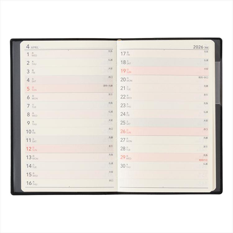 - 2026年1月始まり手帳 月間 B7 NOLTY 能率手帳ライツ1 小型版 黒