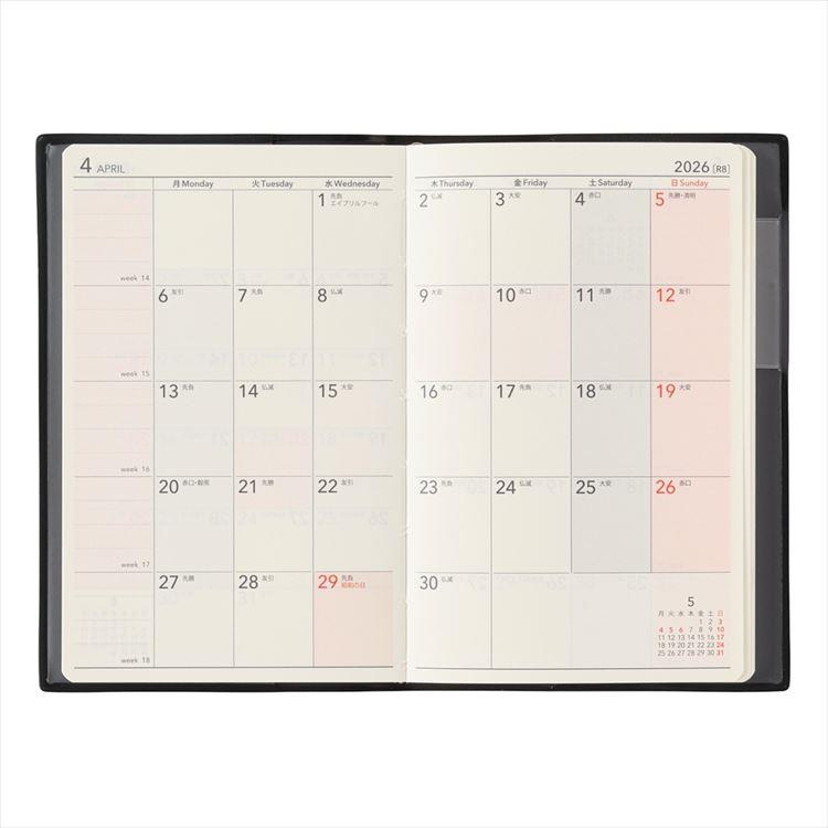 - 2026年1月始まり手帳 月間 B7 NOLTY 能率手帳ライツ2 小型版 黒