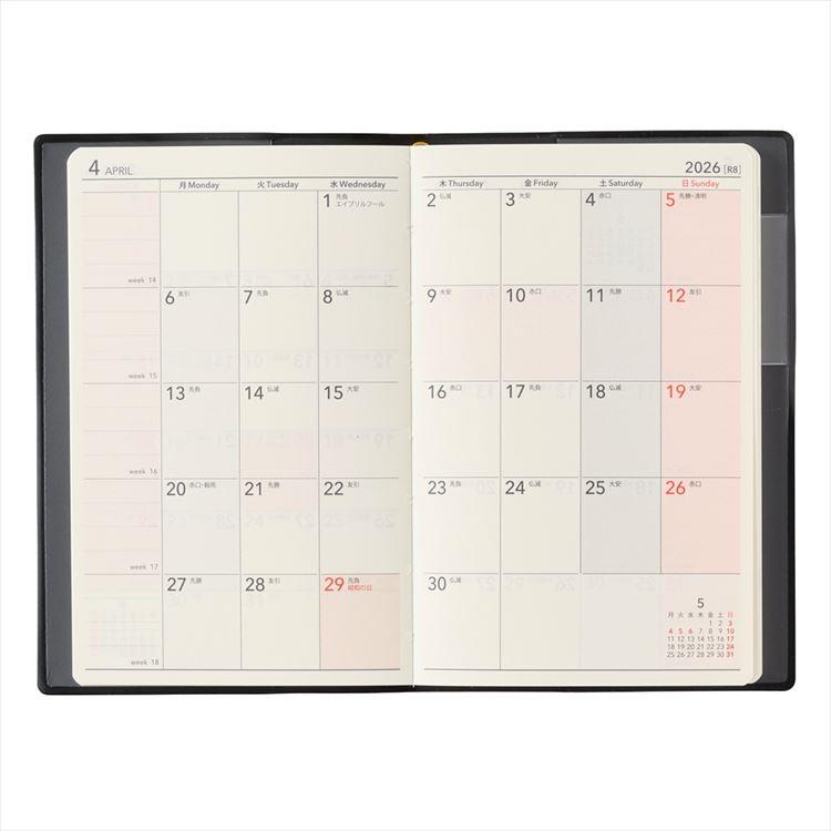 - 2026年1月始まり手帳 週間レフト B7 NOLTY 能率手帳ライツ3 小型版 黒