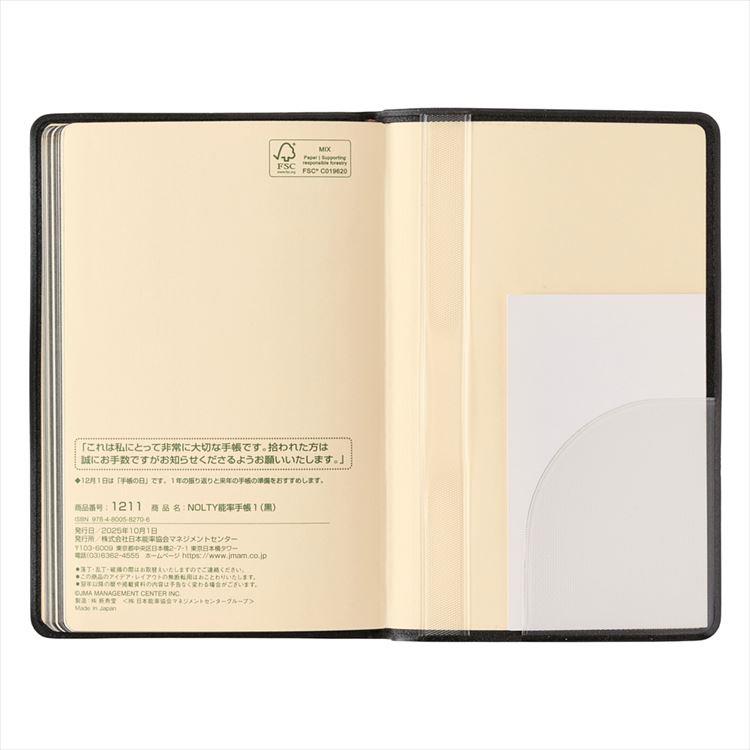 - 2026年1月始まり手帳 月間 B7G NOLTY 能率手帳1 黒