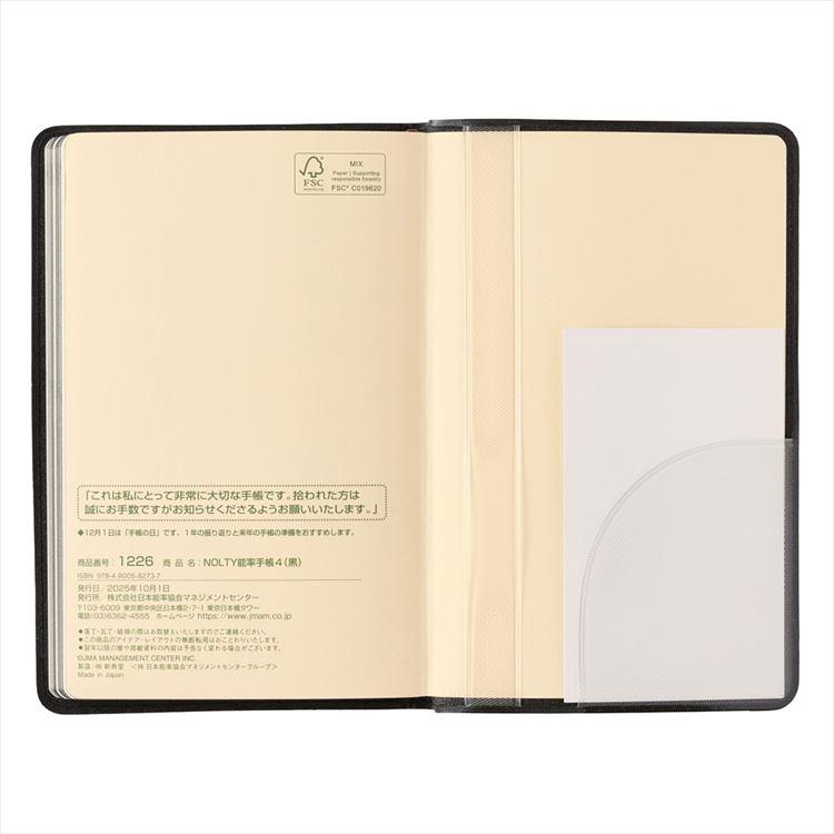 2026年1月始まり手帳 週間レフト B7 NOLTY 能率手帳4 黒