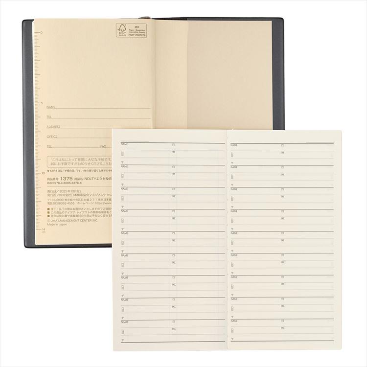 2026年1月始まり手帳 週間レフト B7 NOLTY エクセル8 黒