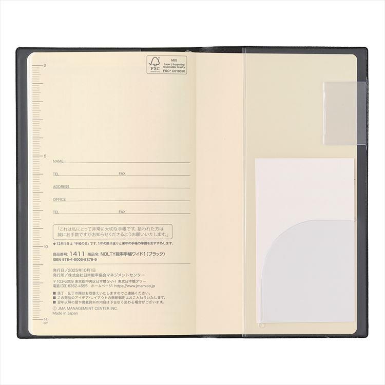 2026年1月始まり手帳 週間レフト B7 NOLTY 能率手帳ワイド1 ブラック
