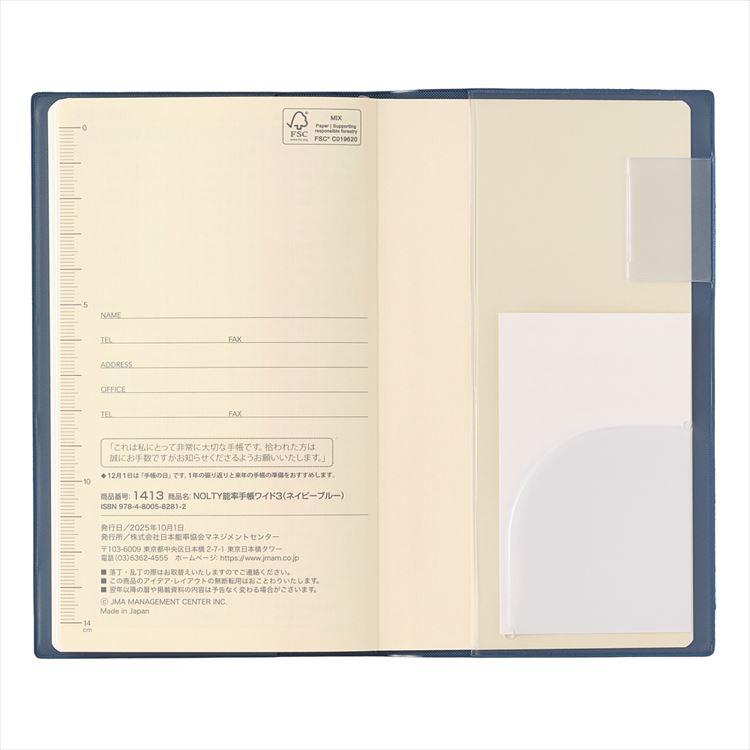 - 2026年1月始まり手帳 週間バーチカル B7 NOLTY 能率手帳ワイド3 ネイビーブルー