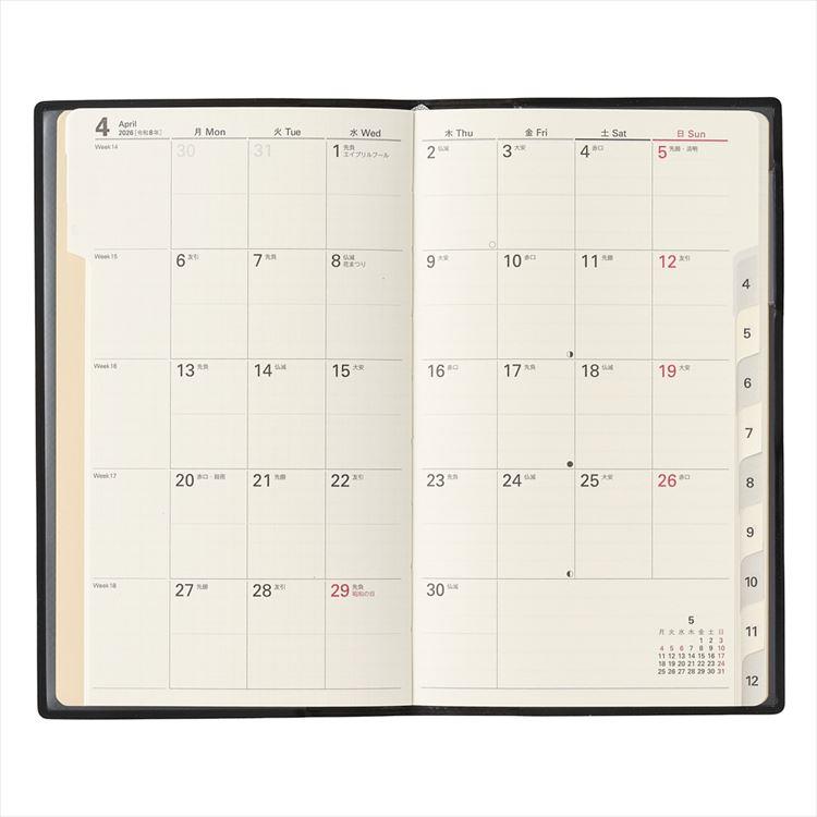 開きたい月をすぐに開ける便利なインデックス付きのマンスリー手帳