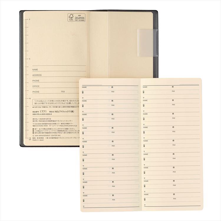 2026年1月始まり手帳 週間レフト B7 NOLTY ウィック7 黒