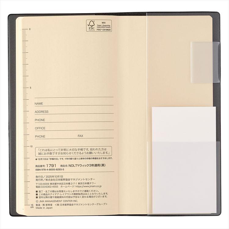 2026年1月始まり手帳 月間 B7G NOLTY ウィック3年連用 黒