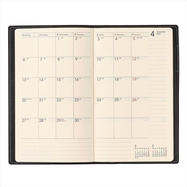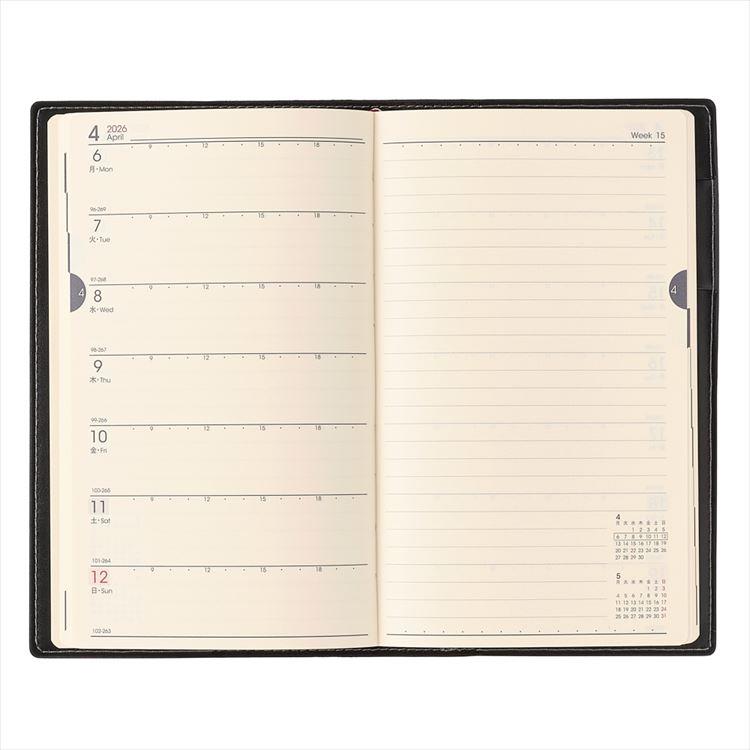 - 2026年1月始まり手帳 週間レフト A6 NOLTY クレスト1 ブラック