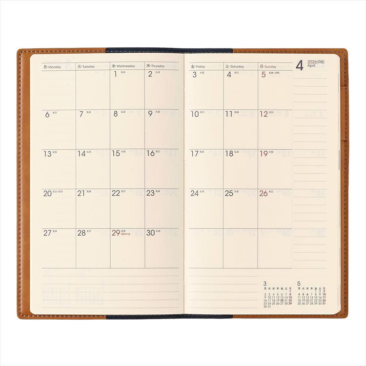 - 2026年1月始まり手帳 週間バーチカル A6 NOLTY クレスト2 ネイビー