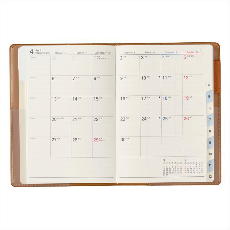 - 2026年1月始まり手帳 週間バーチカル A6 NOLTY キャレル キャメル
