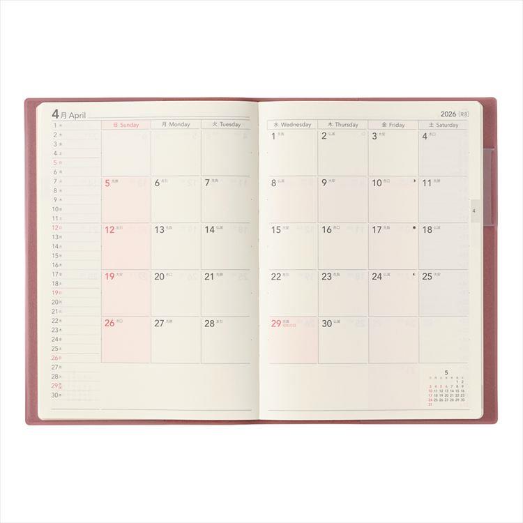 - 2026年1月始まり手帳 週間レフト B6 NOLTY エクリ5 ピンク