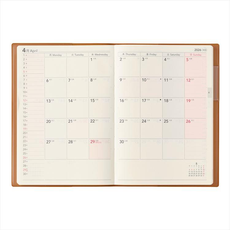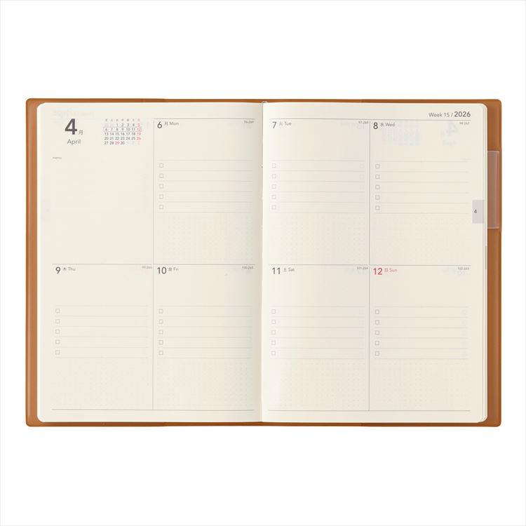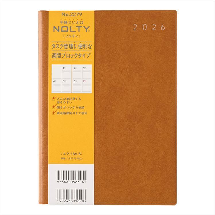 - 2026年1月始まり手帳 週間ブロック B6 NOLTY エクリ8 キャメル
