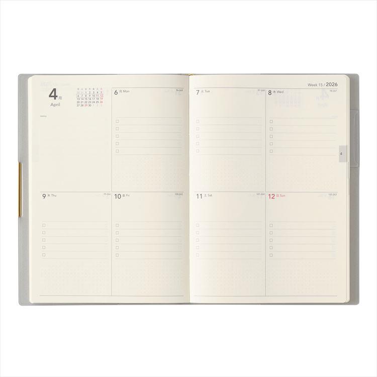 【週間ページ】見開き1週間でブロック型に分かれているタイプ。
