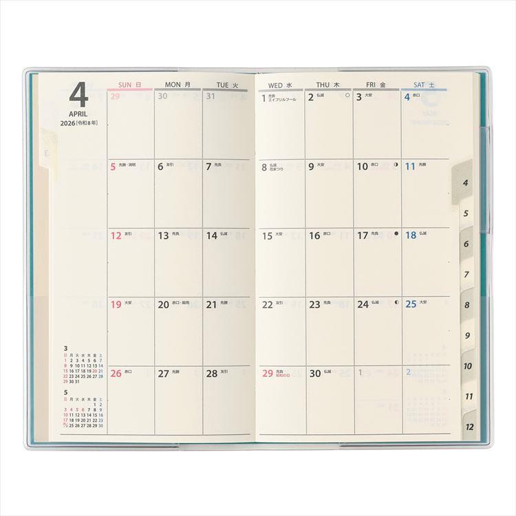 2026年1月始まり手帳 月間 B7 NOLTY スリム-i ターコイズ