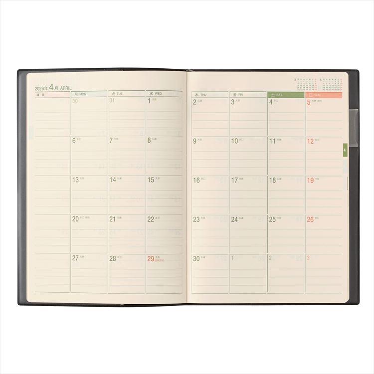 - 2026年1月始まり手帳 週間レフト A5 NOLTY 能率手帳 月間ブロック 黒