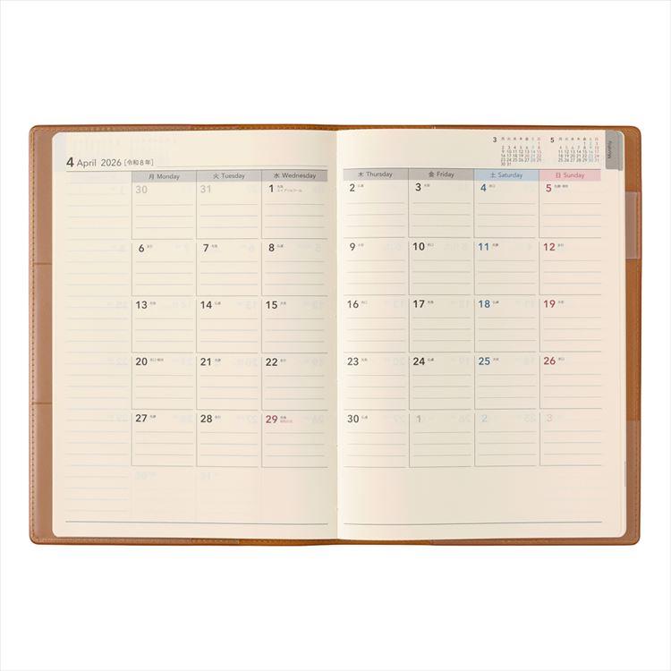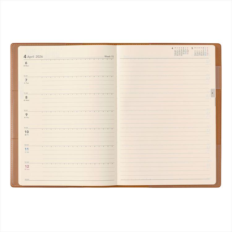 - 2026年1月始まり手帳 週間レフト A5 NOLTY エクリ1 キャメル