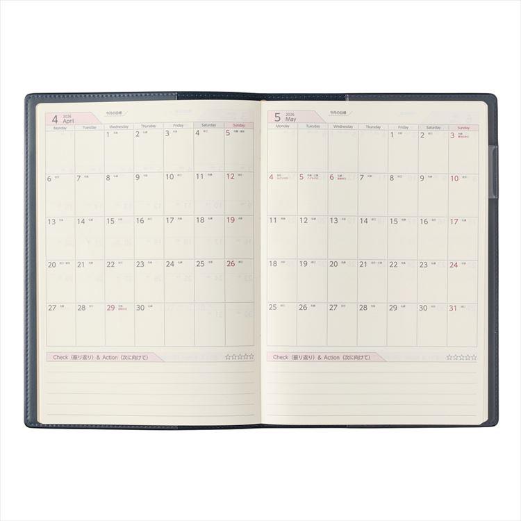 【月間ページ】見開き2ヶ月のベーシックなブロックタイプ(月曜始まり)。