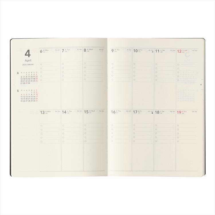- 2026年1月始まり手帳 週間ブロック A5 NOLTY ティオ ブロック2W ブラック