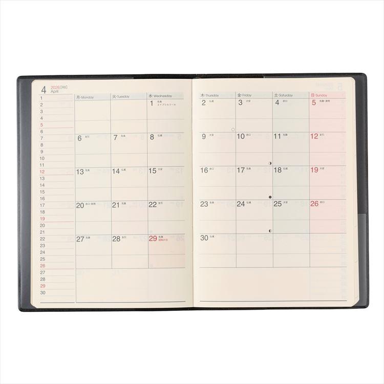 - 2026年1月始まり手帳 月間 A6 NOLTY メモリーポケット 黒