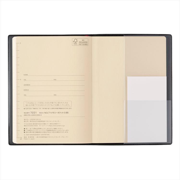 2026年1月始まり手帳 月間 A6 NOLTY メモリーポケット 黒
