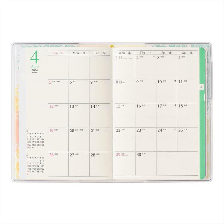 PAGEM by NOLTY(ペイジェム バイノルティ)のマンスリー手帳、リュミエールプチシリーズは3ヵ月ごとに切り替わるカラフルインデックスが特長。