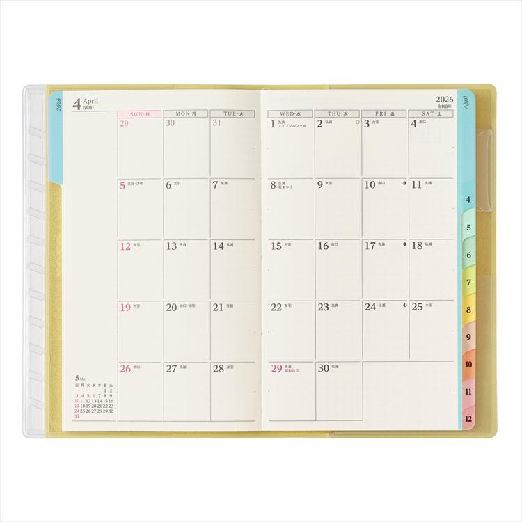 【月間ページ】見たいページがパッと開けるインデックス付き(日曜始まり)。