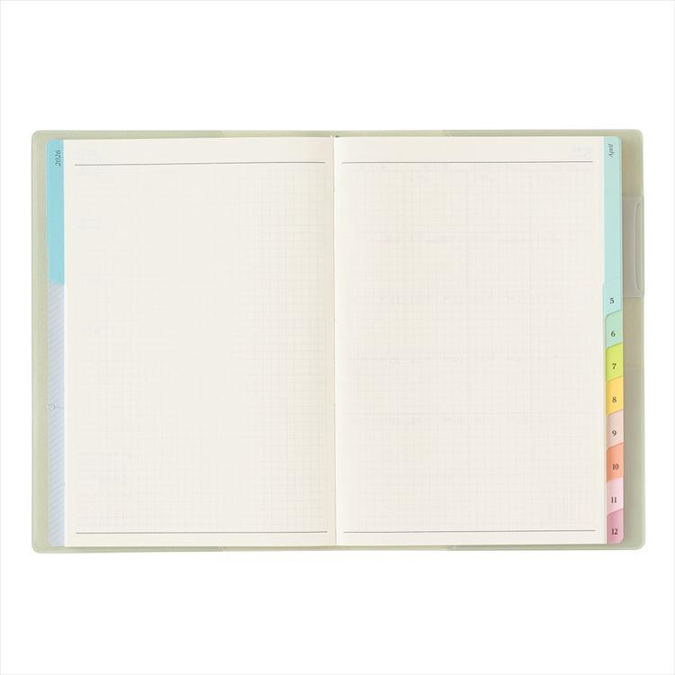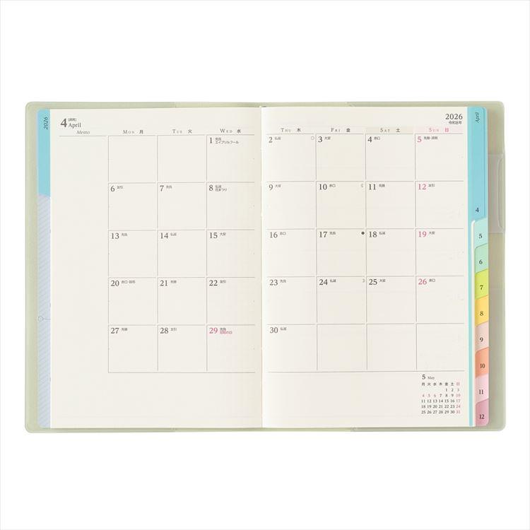 【月間ページ】見たいページがパッと開けるインデックス付き(月曜始まり)。