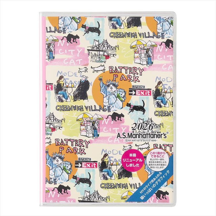 - 2026年1月始まり手帳 月間 A6 ペイジェム マンハッタナーズ ダウンタウン猫歩き