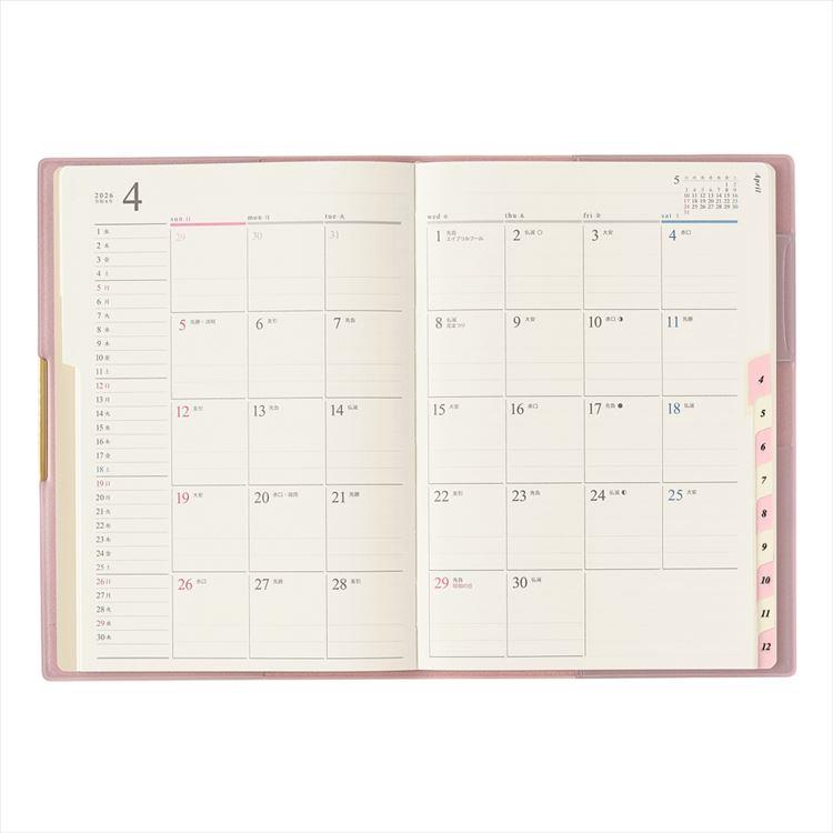 - 2026年1月始まり手帳 月間 B6 ペイジェム グラース ラベンダーピンク